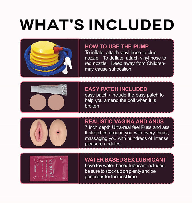 - Includes One Pair of Anus Vagina, foot pump , puncture repair kit and Lubricant for easy care